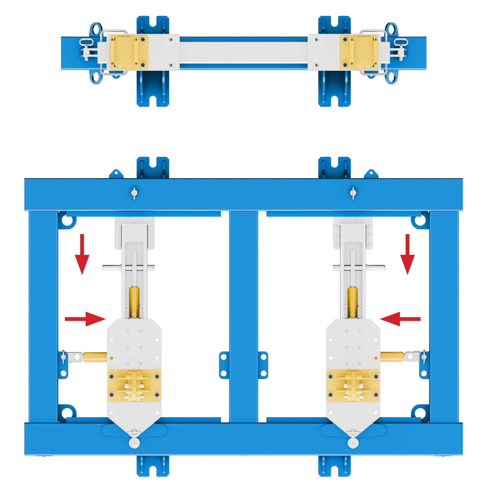 Eine besonders interessante Lösung stellt das Traversensystem (Kreuzkopfsystem) dar. Sein größter Vorteil liegt in der hohen Mobilität der Systemkomponenten sowie im geringen Platzbedarf bei der Lagerung – ein entscheidender Vorteil für kleinere Werkstätten, die Kabinenreparaturen nur gelegentlich durchführen. Zudem bietet es großzügigen Zugang zur Bodenstruktur der Kabine, was zusätzliche Instandsetzungsarbeiten deutlich erleichtert.
